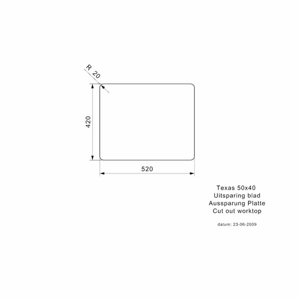 - Ausschnittmaße aufliegender Einbau: 520 x 420 mm