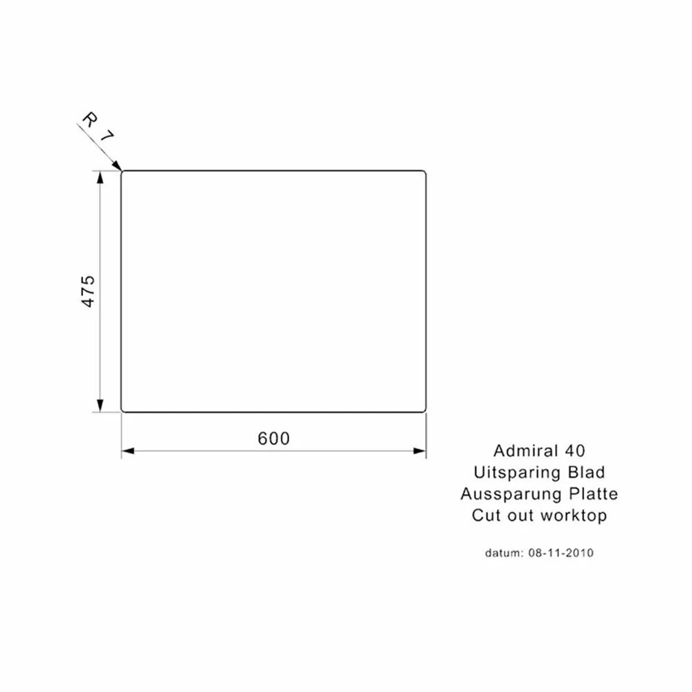 - Ausschnittmaße aufliegender Einbau: 600 x 475 mm R7