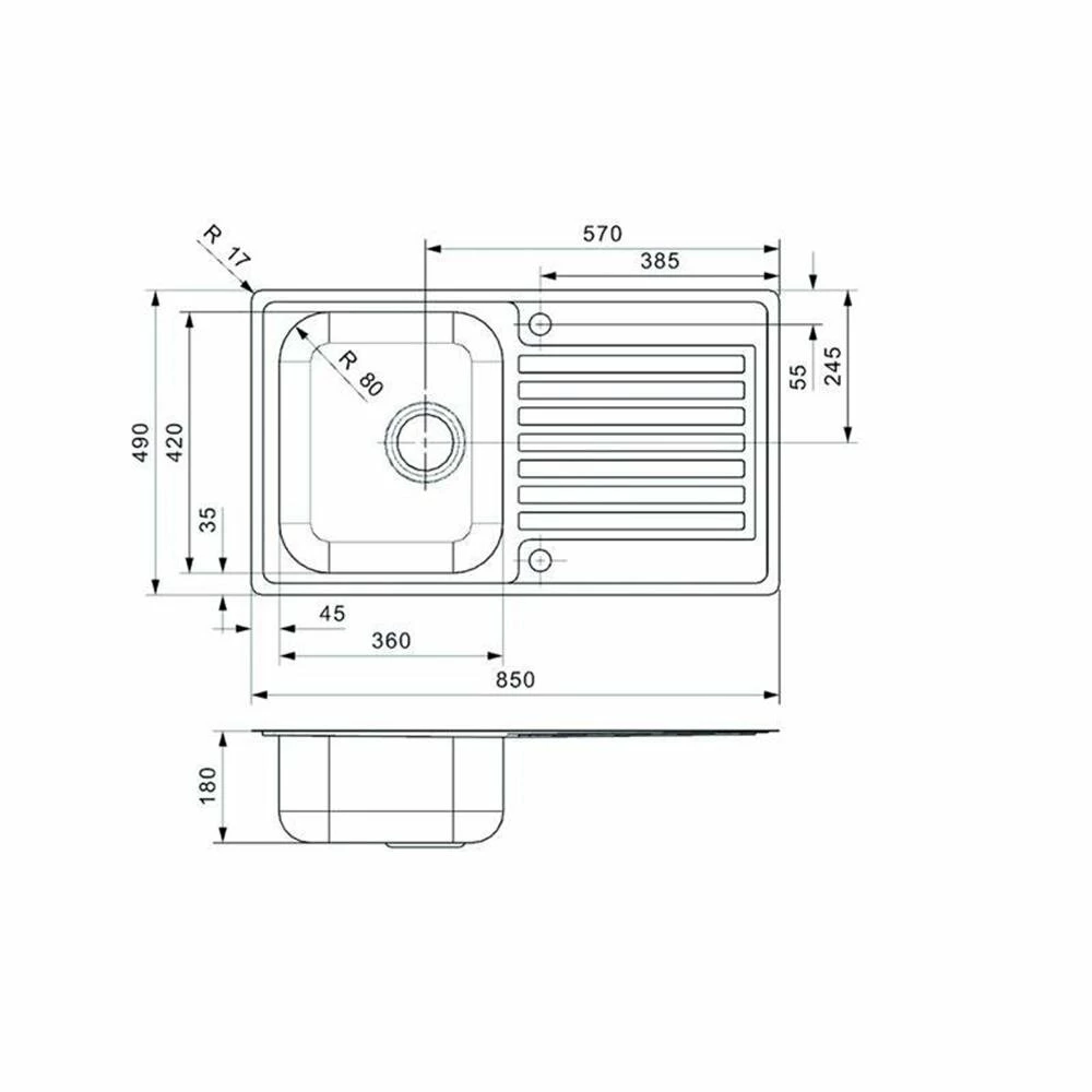 - Spülenmaß: B 850 x T 490 mm