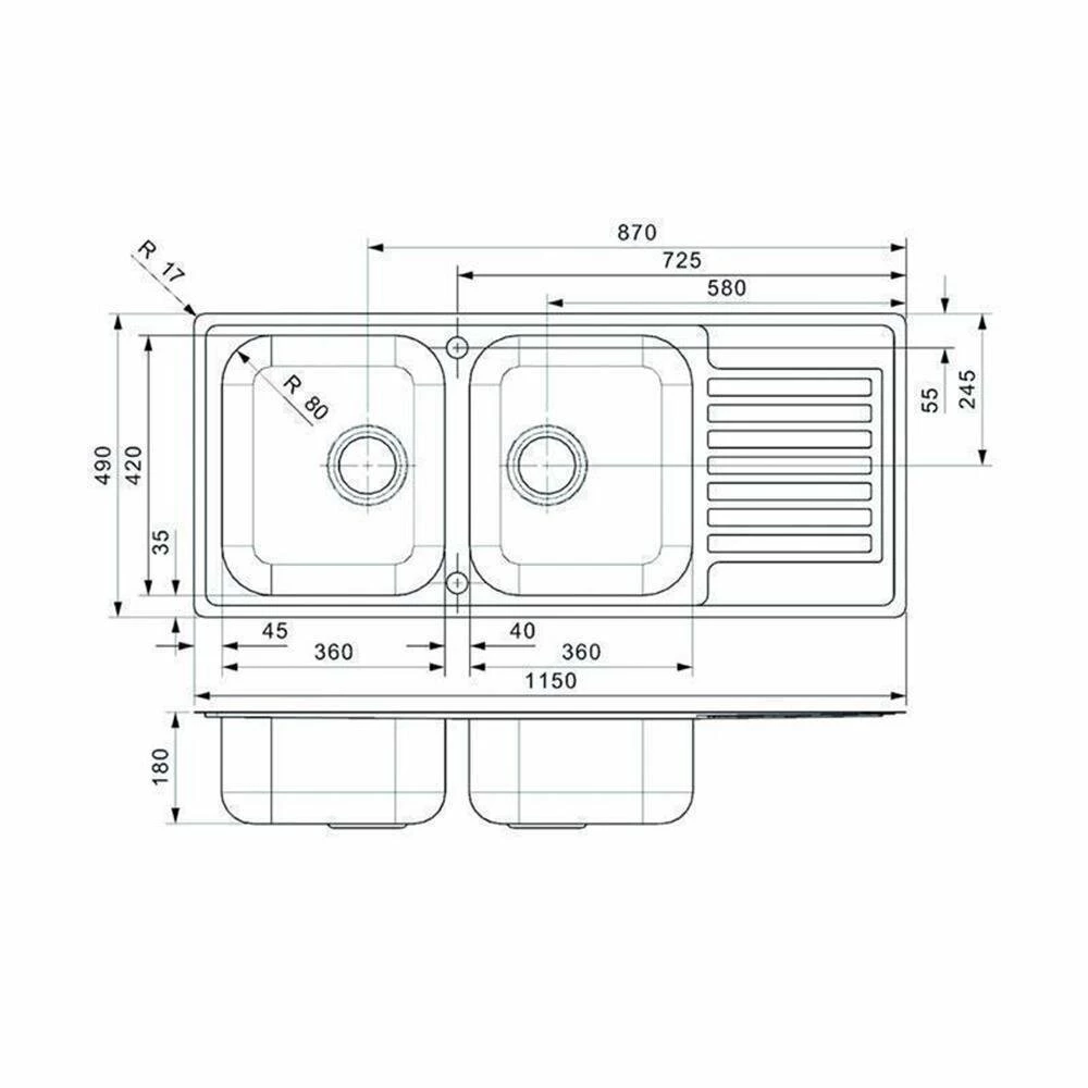 - Beckenabmessung: 2 x 360 x 420 x 180 mm