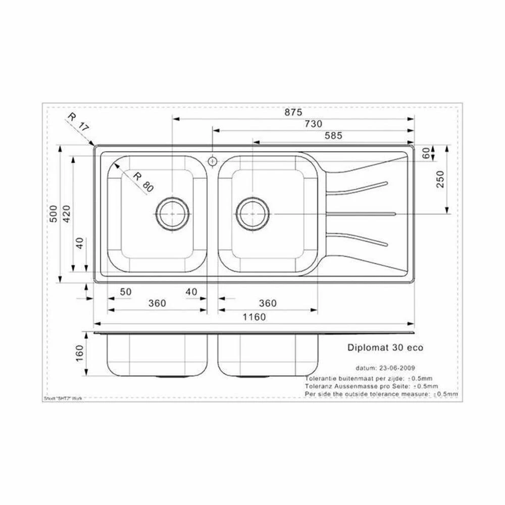 Einbauspüle Diplomat 30 Eco in Edelstahl poliert.