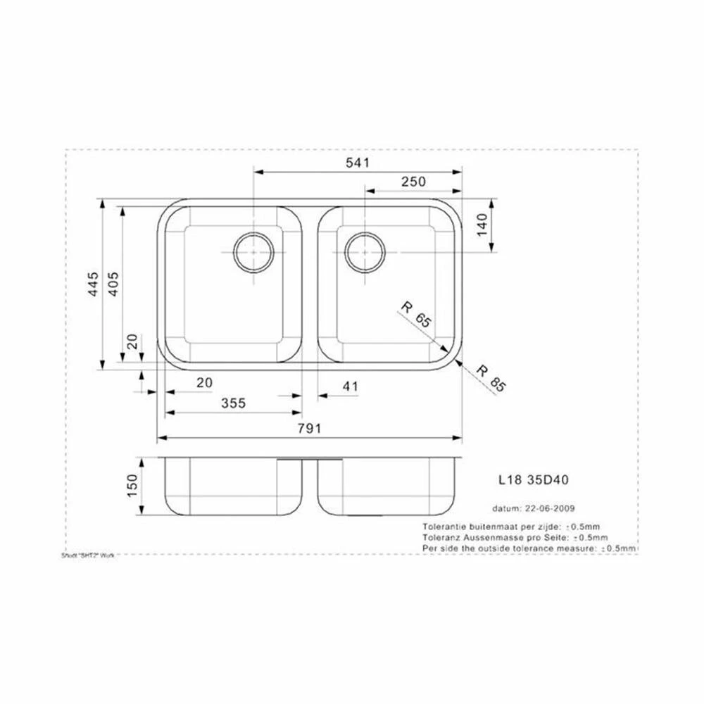 Reginox Clean & Care Unterbaubecken L18 35D40 KGKG-CC ( Edelstahl / 304 )