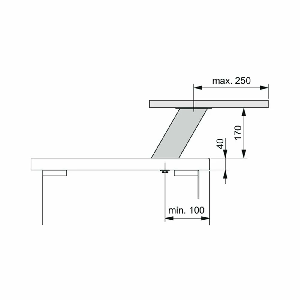 - max. Tragekraft pro Paar von ca. 60 kg bei gleichmäßig verteilter Last, bei einem max. Abstand der Konsolen von 900 mm und einem max. Überstand der Platten von 250 mm
