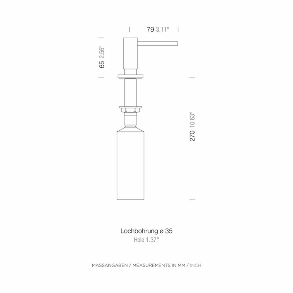 Spülmittelspender in verschiedenen Oberflächen, mit Füllmenge 500 ml. Die Befüllung ist durch einfaches Abziehen des Pumpkopfes von oben möglich.