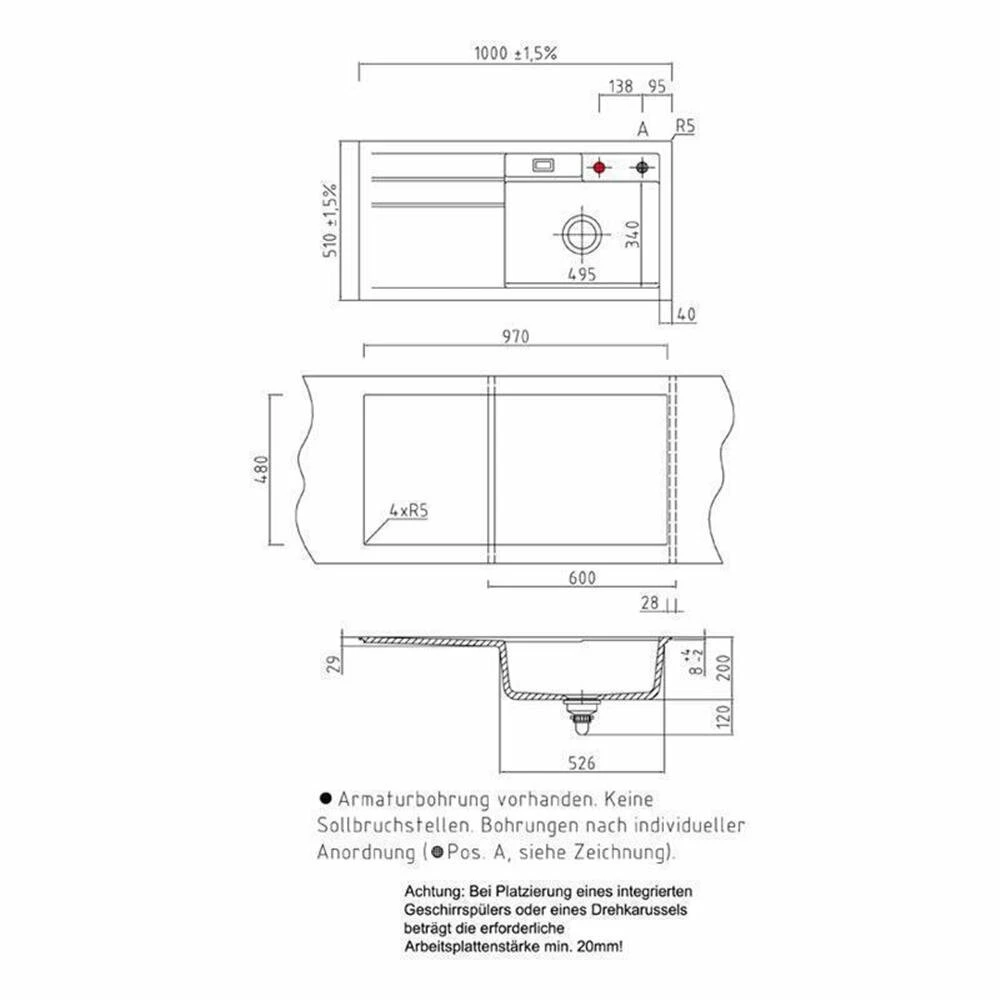 - Spülenmaß: B 1000 x T 510 mm
