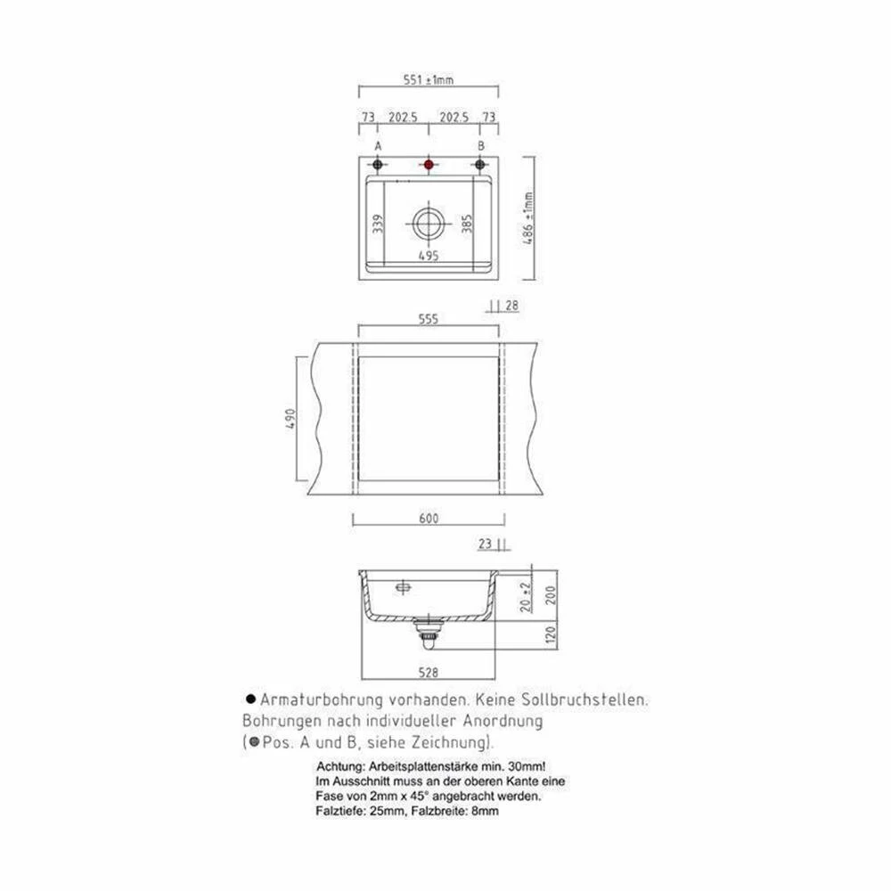 - Spülenmaß: B 551 x T 486 mm