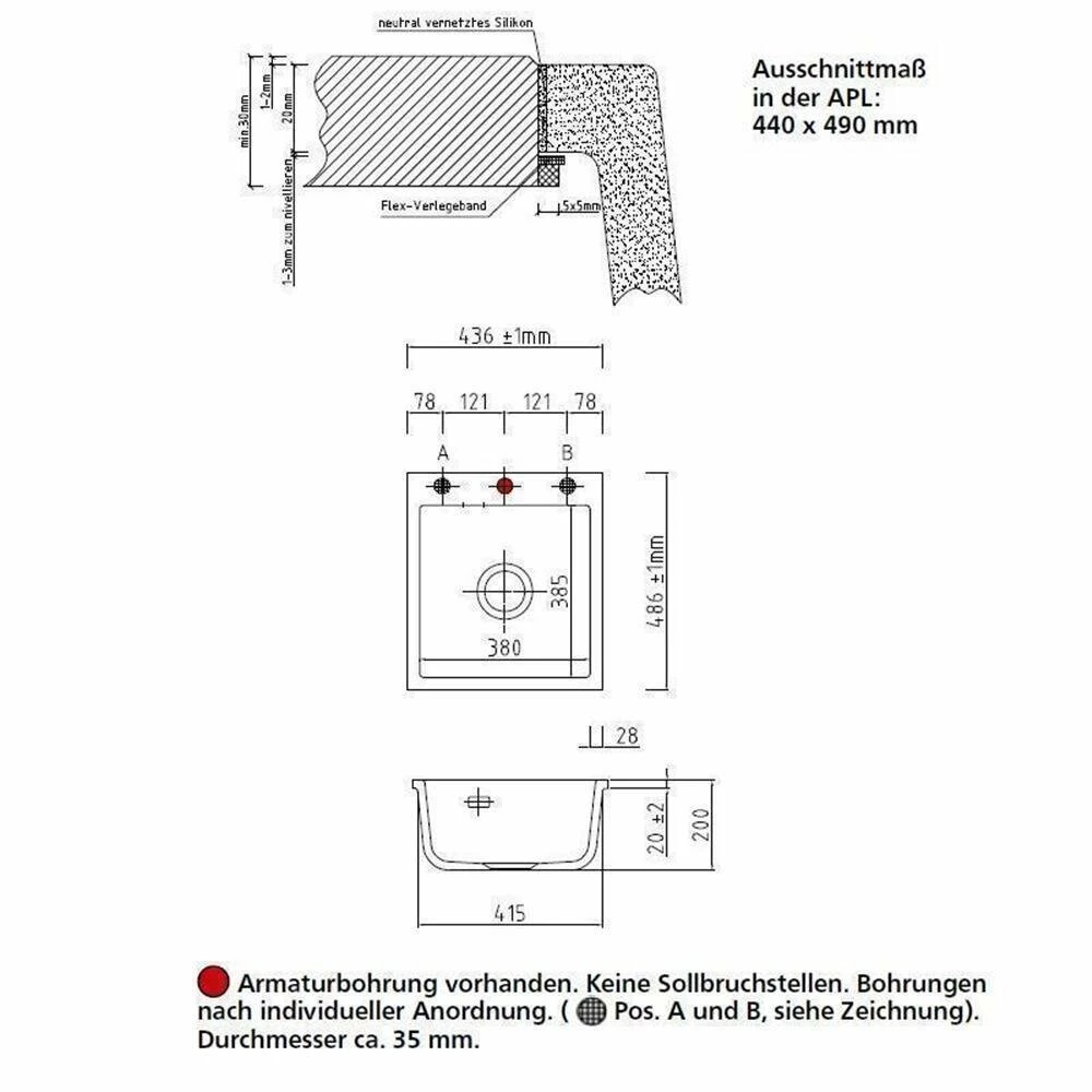 - Spülenmaß: B 436 x T 486 mm