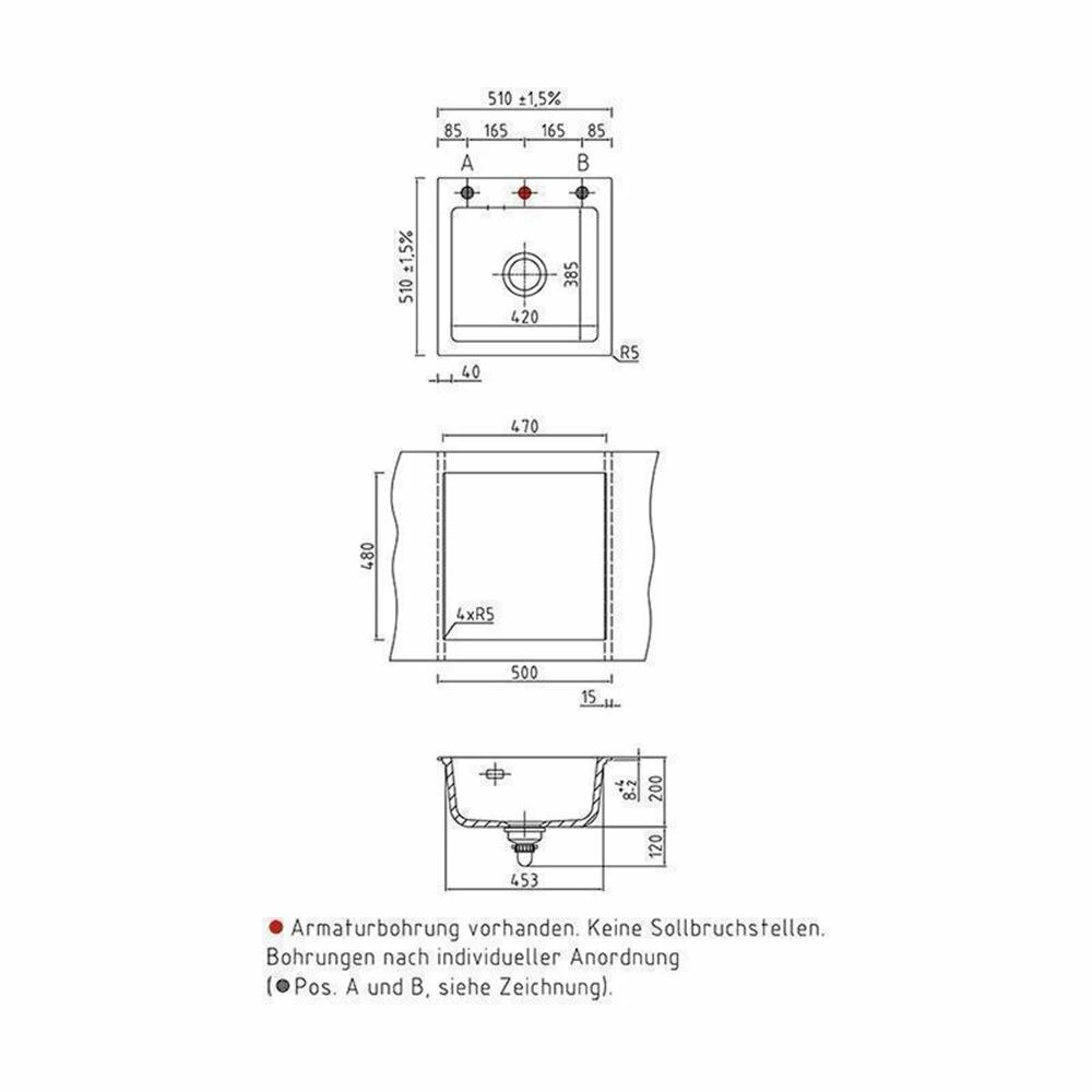 - Spülenmaß: B 510 x T 510 mm
