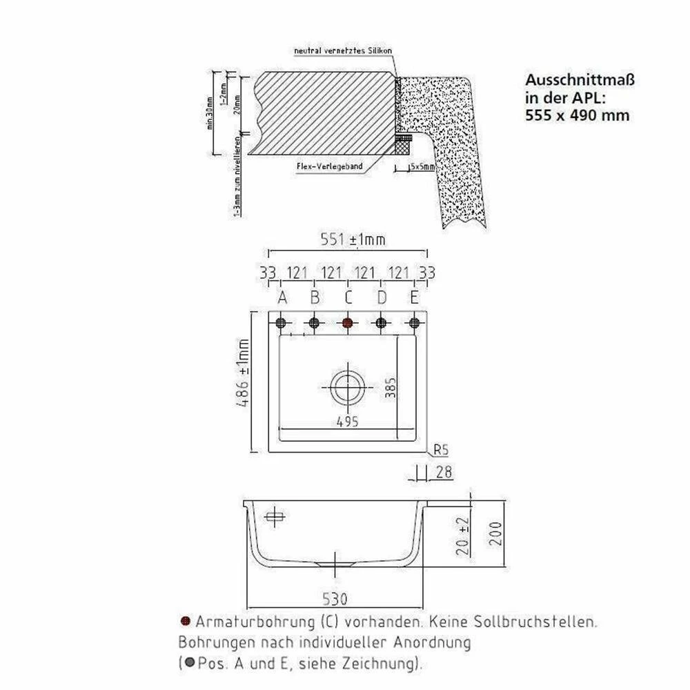 - Spülenmaß: B 551 x T 486 mm
