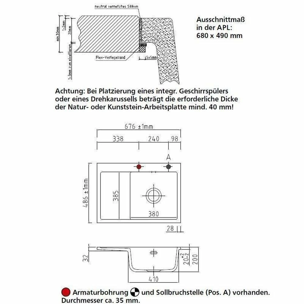 - Spülenmaß: B 676 x T 486 mm