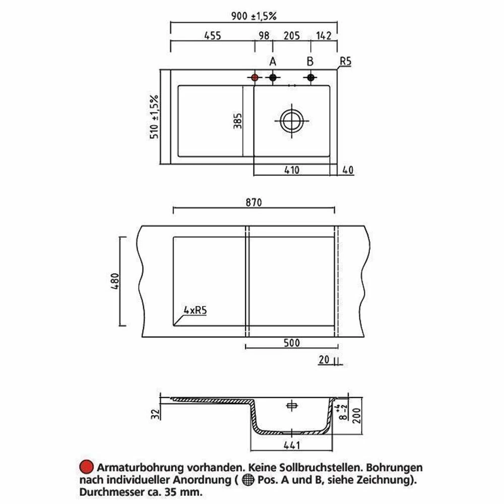 - Die Versiegelung ist optisch nicht sichtbar und reibt sich durch den Gebrauch der Spüle im Laufe der Jahre ab.