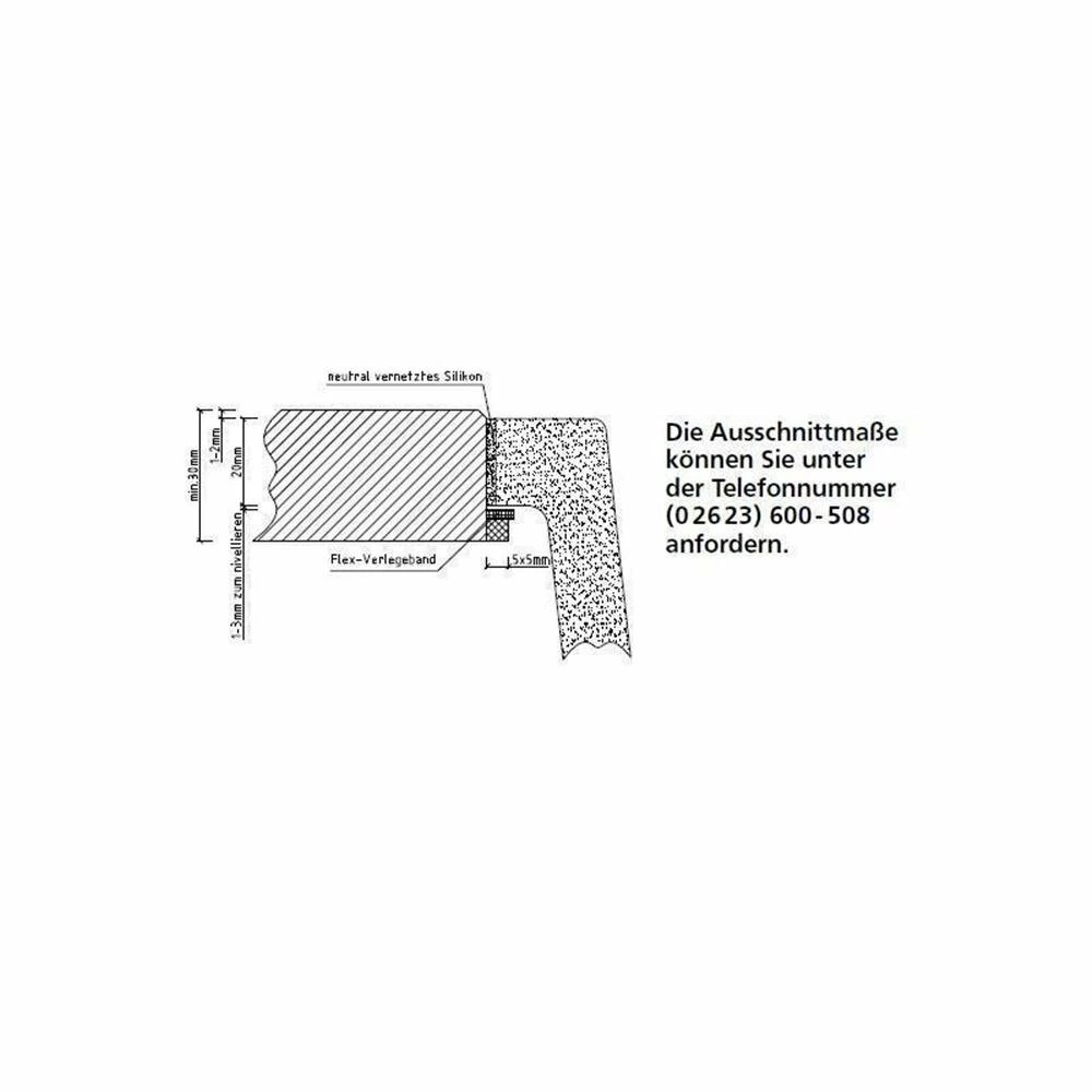 - die Arbeitsplattenstärke muss mindestens 30 mm betragen. Mit Unterkonstruktion ist der Einbau auch in dünnere Arbeitsplatten möglich