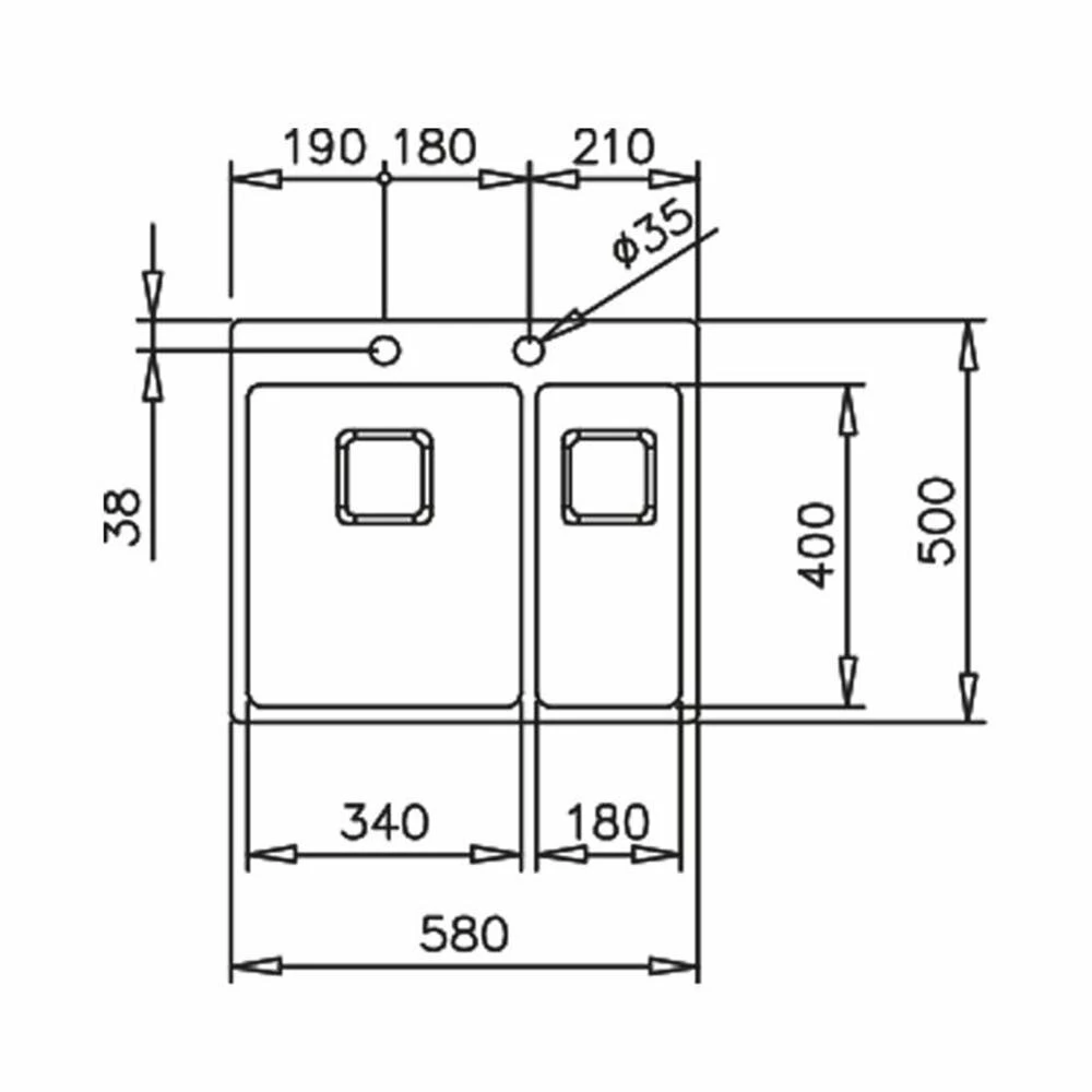 - Beckengröße: B 340 x T 400 x H 200 mm und B 180 x T 400 x H 200