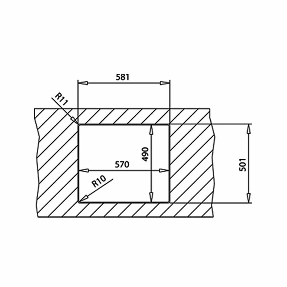 - Spülen-Randprofil: flächenbündiger Einbau, aufliegend mit Flachrand