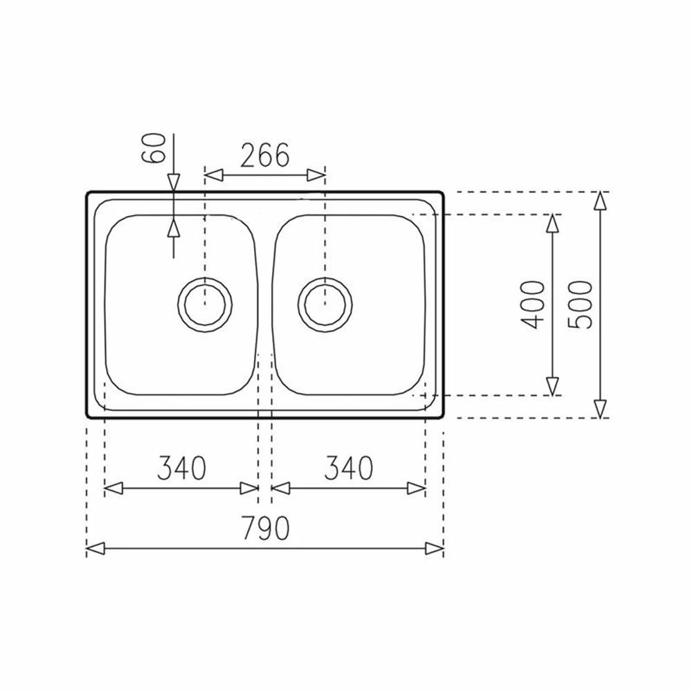 - Beckengröße: 2x B 340 x T 400 x H 170 mm