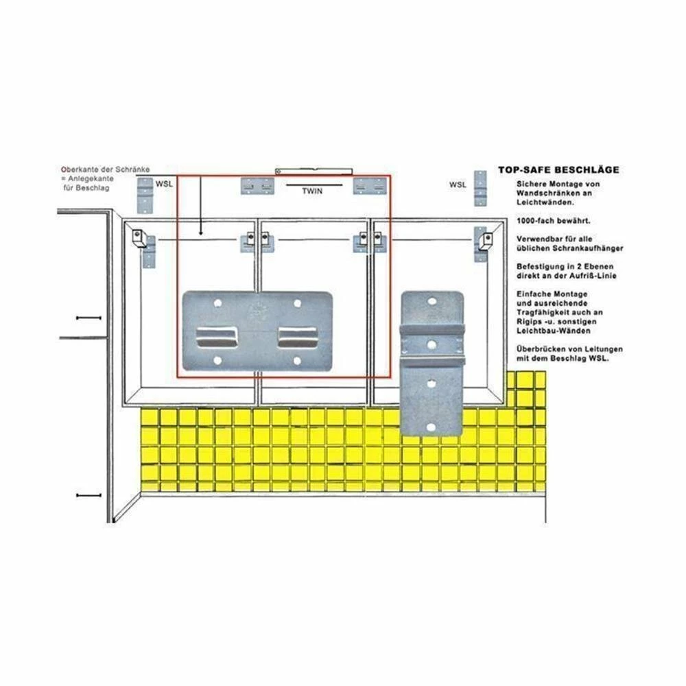 Top-Safe Twin Beschlag zur Befestigung von Oberschränken, verzinkt