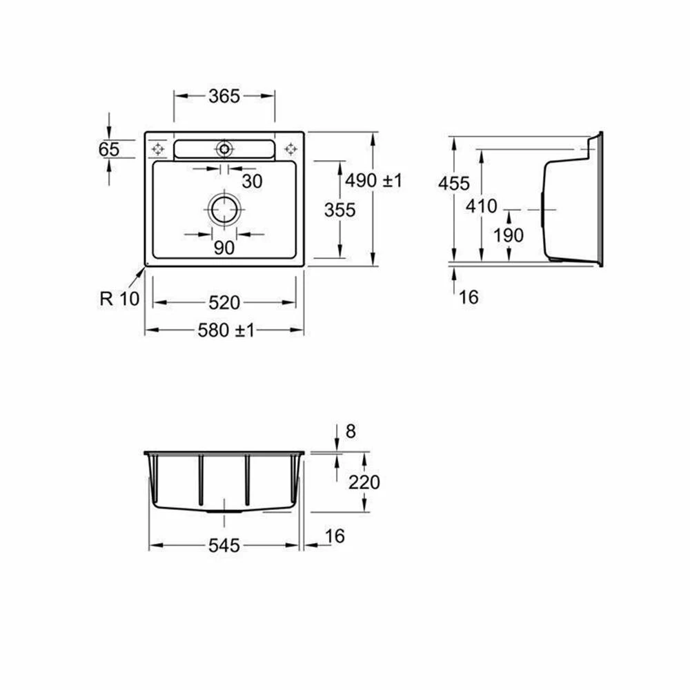 serienmäßig mit CeramicPlus Versiegelung und Titanceram - Spülenmaß: B 580 x T 490 mm
