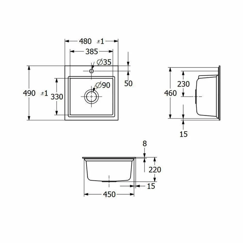 - Außenmaße: B 480 x T 490 mm