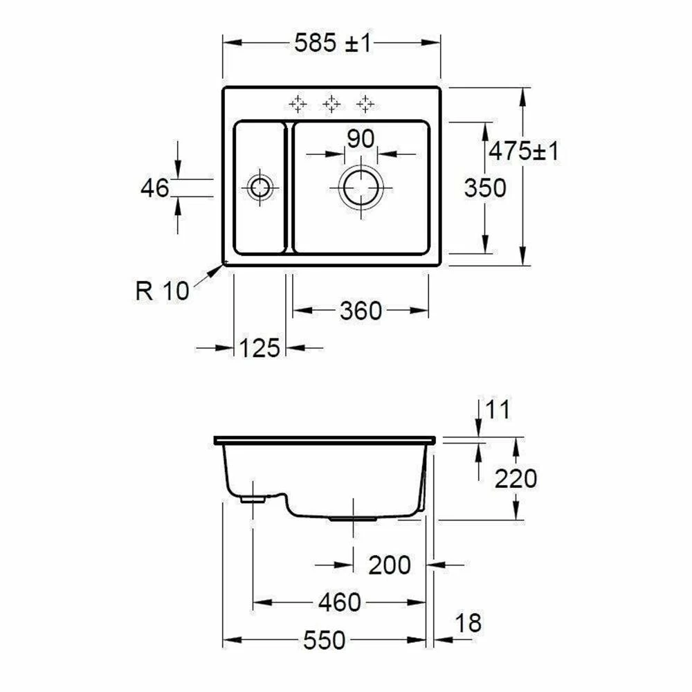 - 1 Lochbohrung für die Küchenarmatur ist grundsätzlich erforderlich