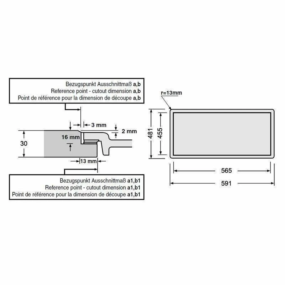 - Ausschnittmaß: 591 x 481 mm