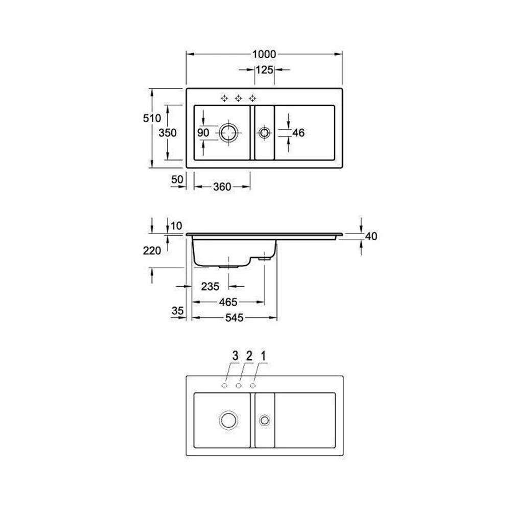 - 1 Lochbohrung für die Küchenarmatur ist grundsätzlich erforderlich