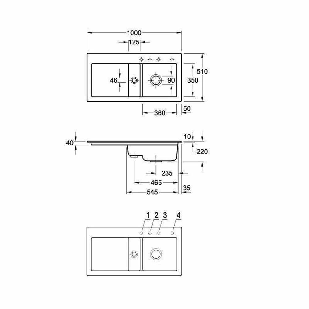 - Spülenmaß: B 1000 x T 510 mm