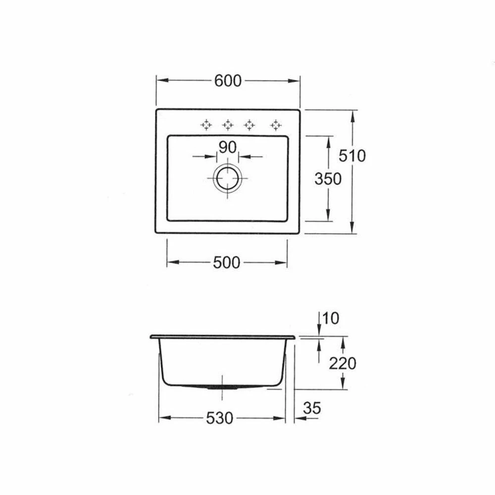 serienmäßig mit CeramicPlus Versiegelung - Spülenmaß: B 600 x T 510 mm