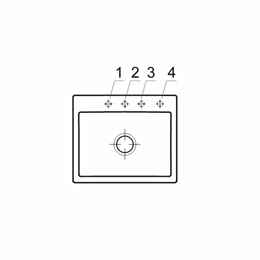 - Zusätzliche Bohrung, zum Beispiel für Spülmittelspender möglich (beachten Sie hierzu die Skizze mit den möglichen Bohrungen)