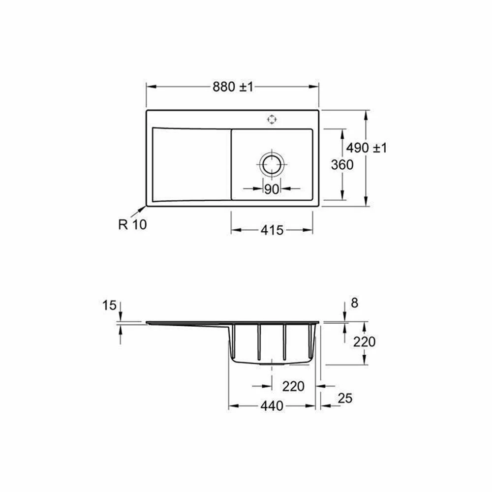 - 1 Lochbohrung für die Küchenarmatur ist grundsätzlich erforderlich