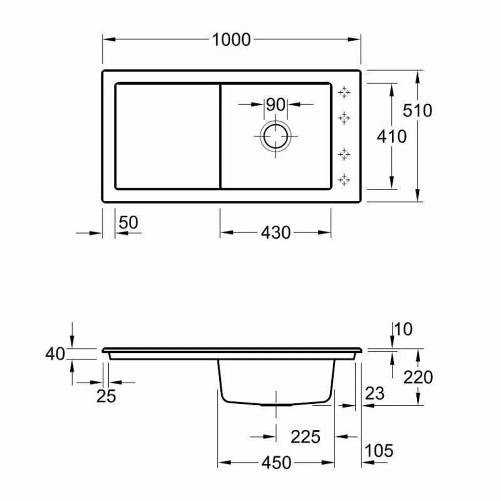 serienmäßig mit CeramicPlus Versiegelung - Spülenmaß: B 1000 x T 510 mm